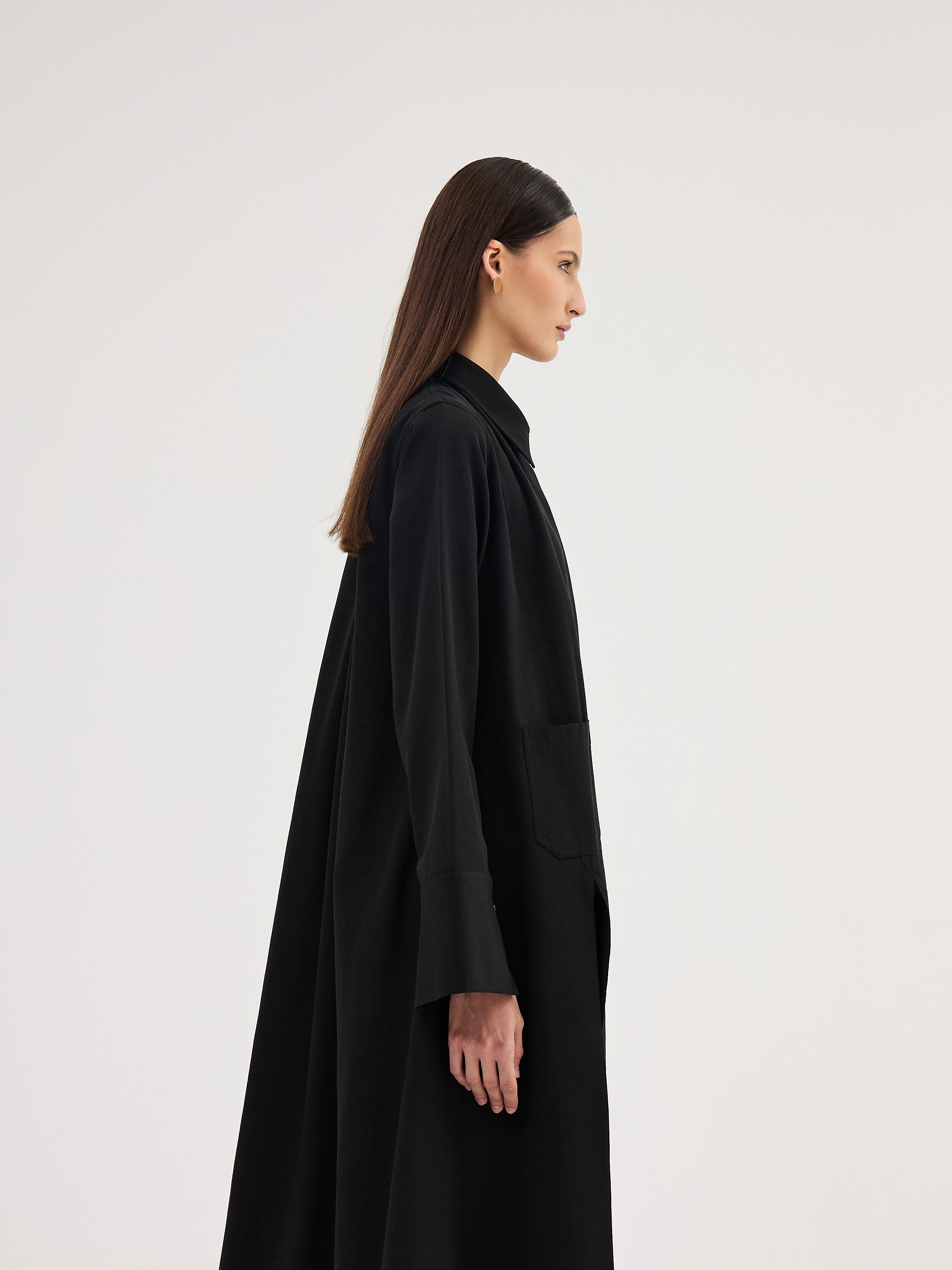 Its relaxed fit and dramatic long slits at the front make a powerful fashion statement, while the strong collar adds an extra touch of elegance. Made from high-quality corduroy, this coat boasts a dense, luxurious material that not only looks amazing but also feels incredibly soft against your skin